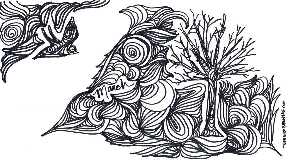 March: Coloring Print and Desktop Wallpaper